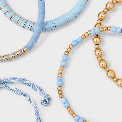 5-Piece bracelet set from Wild Fable™ includes beaded, “Game Day” text, and other bracelets. Made of gold-tone metal and plastic for everyday wear. Stretch band and slide closures offer a nice fit. Great for yourself or as a gift for a sports fan.