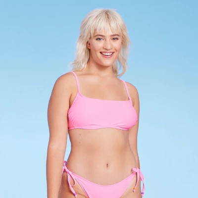 Solid-color bralette bikini top from Wild Fable™. Made of a soft, stretchy fabric with removable cups. Slender shoulder straps with buckles and crisscross back strings that wrap around and knot at the front provide an adjustable fit. Colorful beaded accents on the strings complete the look with a stylish touch.