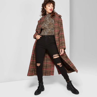 Black skinny jeans from Wild Fable™ with a slim fit. Feature destructed details and an ankle-length design. Super high-rise cut and belt-loop waistband with fly button and zip fastening for a secure fit. Made from cotton with a hint of stretch for breathable, flexible wear that moves with you. Five handy pockets complete the look with functional flair.